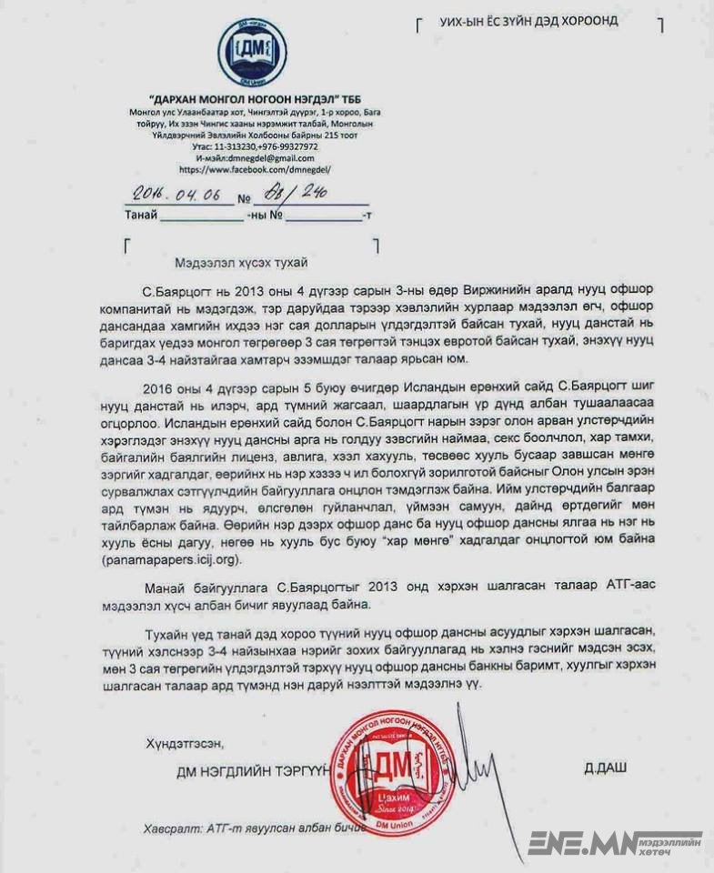 Оффшор С.Баярцогтын талаарх мэдээллүүд...!!!! Гол мэдээ, Ноцтой мэдээ 14-05-2016, 13:35 800 Хуваалцах 800 Хуваалцах Facebook Twitter Санал болгох 10-05-2016, 13:53 Н.Алтанхуяг: Энэ оффшор мовшор гэдэг нь яг яадаг юм бэ?… 8-04-2016, 14:23 С.Баярцогтын ”мартсан” оффшор данс юу болов?… 8-04-2016, 14:15 С.Баярцогтын ”мартсан” оффшор данс юу болов?… 12-02-2015, 09:23 С.Баярцогтын ядаргаа тайлдаг массаж… 8-11-2014, 15:29 С.Баярцогтын алдсан бичлэг шуугиан дэгдээж байна (БИЧЛЭГ)… Сэтгэгдэл АНХААРУУЛГА: Уншигчдын бичсэн сэтгэгдэлд www.ENE.mn хариуцлага хүлээхгүй болно. ХХЗХ-ны журмын дагуу зүй зохисгүй зарим үг, хэллэгийг хязгаарласан тул ТА сэтгэгдэл бичихдээ хууль зүйн болон ёс суртахууны хэм хэмжээг хүндэтгэнэ үү. Сэтгэгдэлтэй холбоотой санал гомдлыг 9318-5050 утсаар хүлээн авна.