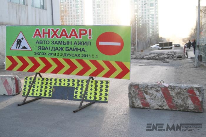 Хүннүгийн гудамж буюу Баянмонгол хорооллын урд зам хаалттай байна. Тухайн замыг урсгал урсгалаар хэсэгчлэн хааж суурийн дахин боловсруулалт,асфальтбетон хучилтын ажилхийж байгаа юм. Дээрх ажлыг өнөөдрийн 23.00 цагт дуусгахаар төлөвлөжээ. Иймээс "Home Plaza” дэлгүүрийн зүүн уулзвараас Дүнжингарав захын уулзвар хүртэл автозамын урд урсгал бүрэн хаалттай байна. Тухайнхугацаанд замын хойд эгнээгээр зөвхөн баруунаас зүүн чиглэлтэйгээр хөдөлгөөнд оролцож болно.