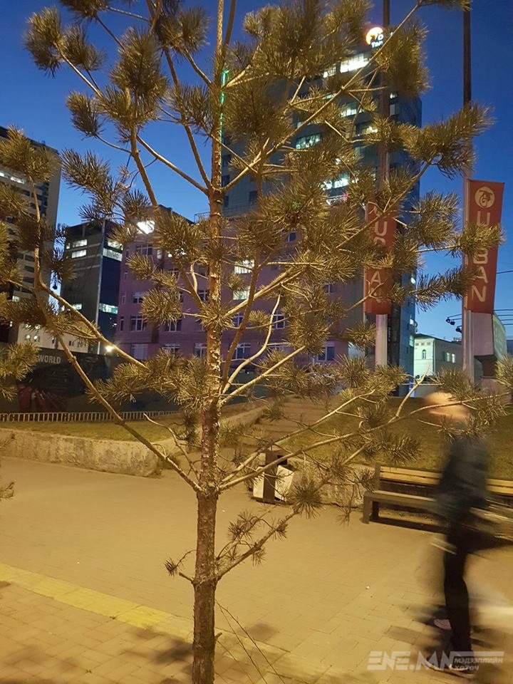 Эд ч бас удахгүй үрчийж, хатах хувь заяа хүлээж буйг үгүй гэх газаргүй. Мөн Төрийн ордны баруун талаас төв зам хүртэлх хэсэгт том нарс тарьсан. Өтгөн саглагар шилмүүстэй, мөнх ногоон нарс нийслэлийн үзэмжинд сүр жавхаа нэмээд хачин гоё харагдаж байсан ч эхнээсээ үхэж эхэлж байгаа гэх.
