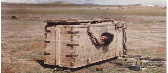 Францын банкир, саятан, адал явдал эрэлхийлэгч Альберт Кан хэмээх эр 1913 онд Азийн хачирхалтай орнуудаар аялжээ. Тэрээр Монголоор аялж явах (07 дугаар сард) үед нь маш хүнд хэлбэрийн нэгэн шийтгэл нүдэнд нь туссан байна. Нэгэн эмэгтэйг толгой гаргах нүх бүхий хайрцагт хийж, өлсгөж зовоож байв. Талын халуун салхи, Монголын хүйтэн шөнүүд шийтгэл амсаж буй этгээдийн зовлонг улам нэмж байв. Яагаад гэвэл энэ авдар гадаа ил байсан юм. Тэгтэл энэ нь шийтгэлийн хамгийн түгээмэл хэлбэр, заримдаа цаазын ял болдог нь тогтоогджээ. Энэ шийтгэл 1924 оныг хүртэл оршиж байсан гэдэг.