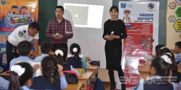 Уг аяны хүрээнд ерөнхий боловсролын сургуулийн сурагчдад "Замын хөдөлгөөний цагаан толгой” сэдвээр сургалт орохоос гадна хүүхдүүдэд замын хөдөлгөөнд оролцохдоо анхаарах зүйлсийн талаар зөвлөмж бүхий номын хавчуурга бэлэглэж буй юм.
