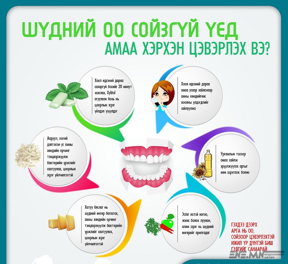ЗӨВЛӨГӨӨ: Шүдний оо, сойзгүй үед амаа хэрхэн цэвэрлэх вэ? Зөвлөгөө 11-09-2018, 12:23 783 Хуваалцах 783 Хуваалцах Facebook Twitter Санал болгох 28-02-2018, 08:45 ӨМНӨГОВИЙН 1-Р СУРГУУЛЬД ШҮДНИЙ ИЖ БҮРЭН КАБИНЕТЫГ БАЙГУУЛАВ… 7-02-2018, 07:16 ТА ӨДӨРТ ХОЁР УДАА ШҮДЭЭ УГААДАГ УУ, ХАРИН ХЭЛЭЭ…… 8-02-2017, 12:22 Нэг л орц ашиглан шүдний чулуугаа хялбар цэвэрлээрэй… 6-06-2016, 08:53 Шүдний өвчин болсон НӨАТ… 6-08-2014, 11:41 Монголчуудыг чихрийн лангуугаа цөөлөхийг Германы шүдний эмч нар зөвлөв… Сэтгэгдэл АНХААРУУЛГА: Уншигчдын бичсэн сэтгэгдэлд www.ENE.mn хариуцлага хүлээхгүй болно. ХХЗХ-ны журмын дагуу зүй зохисгүй зарим үг, хэллэгийг хязгаарласан тул ТА сэтгэгдэл бичихдээ хууль зүйн болон ёс суртахууны хэм хэмжээг хүндэтгэнэ үү. Сэтгэгдэлтэй холбоотой санал гомдлыг 9318-5050 утсаар хүлээн авна.