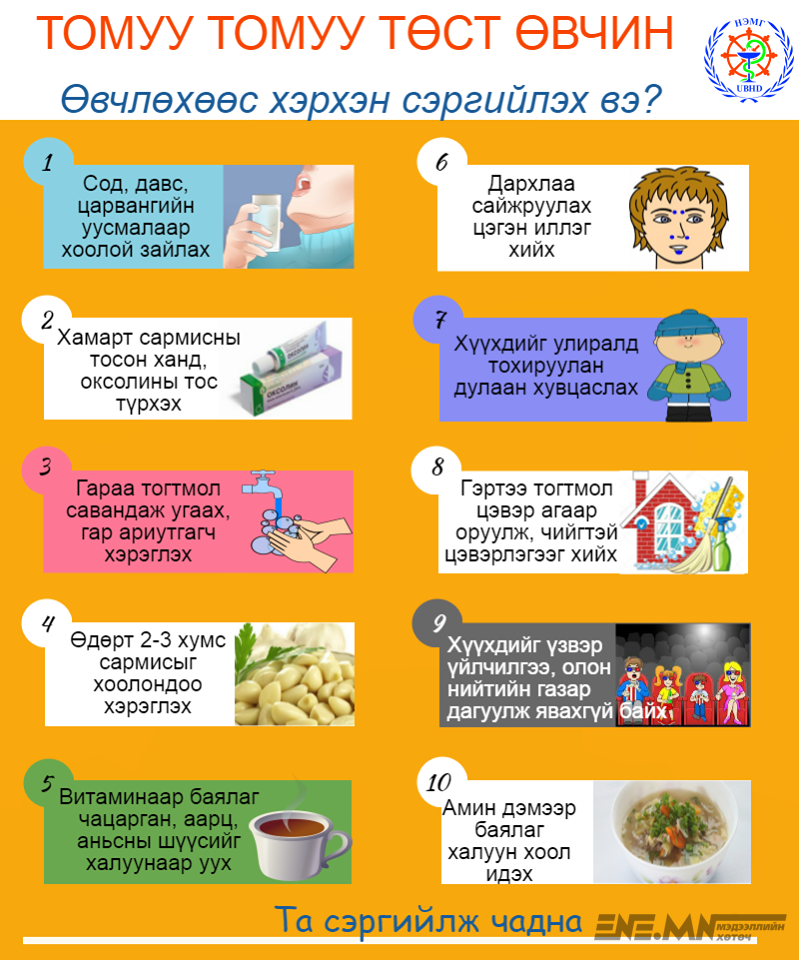 Томуу, томуу төст өвчнөөс хэрхэн сэргийлэх вэ Зөвлөгөө 12-11-2018, 17:06 662 Хуваалцах Нийгэм Эрүүл мэнд 662 Хуваалцах Facebook Twitter Санал болгох 1-11-2018, 11:11 Томуу, томуу төст өвчтэй 2561 тохиолдол оношлогджээ… 26-10-2018, 13:42 Томуу, томуу төст өвчний үед дур мэдэн антибиотек хэрэглэхээс татгалзаарай… 1-02-2018, 09:19 ТОМУУ, ТОМУУ ТӨСТ ӨВЧНИЙ ТОХИОЛДОЛ НИЙТ ҮЗЛЭГИЙН 4.0 ХУВИЙГ ЭЗЭЛЖ БАЙНА… 25-01-2017, 15:56 Томуугийн тархалт буурч, эмнэлгүүд хэвийн горимоор ажиллаж байна… 13-10-2015, 10:16 Томуу, томуу төст өвчнөөс сэргийлье… Сэтгэгдэл АНХААРУУЛГА: Уншигчдын бичсэн сэтгэгдэлд www.ENE.mn хариуцлага хүлээхгүй болно. ХХЗХ-ны журмын дагуу зүй зохисгүй зарим үг, хэллэгийг хязгаарласан тул ТА сэтгэгдэл бичихдээ хууль зүйн болон ёс суртахууны хэм хэмжээг хүндэтгэнэ үү. Сэтгэгдэлтэй холбоотой санал гомдлыг 9318-5050 утсаар хүлээн авна.