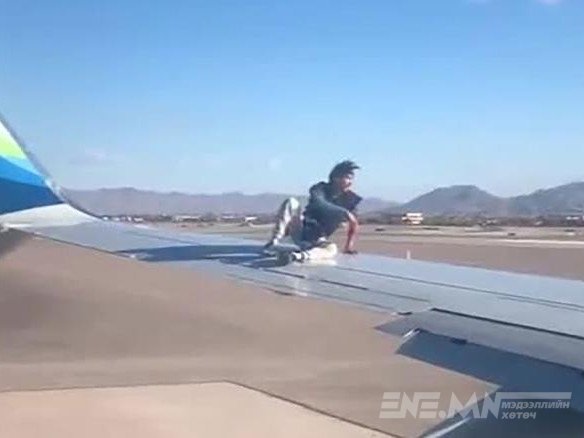 Хөөрөх гэж байсан онгоцны далавчин дээр гарч зогссон эрийг баривчилжээ
