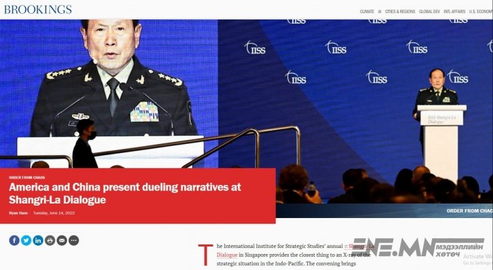 Хойд хөрш маань Украинд "цэргийн тусгай ажиллагаа” явуулж байна. Дөрвөн сар боллоо. Ямартай ч үүнээс үүдсэн тогтворгүй байдал Монголд ч бас тодорхой доргилтуудыг өгч эхэлсэн. Хэзээ, яаж дуусахыг бүү мэд. Тэгвэл өмнөд хөрш маань Америктай албан ёсоор шөргөөцөлдөөд эхэллээ. Саяхан Сингапурт долоо хоногийн өмнө болж өнгөрсөн "Шангри Ла яриа хэлэлцээ” олон улсын аюулгүй байдлын дээд хэмжээний уулзалтын үеэр энэ байдал ил болсон байна. Энэ талаар гурав хоногийн өмнө www.brookings.edu-д "Brookings Institution”-ийн судлаач Райан Хасс "Шангри-Ла яриа хэлэлцээний үеэрх Америк, Хятад хоёр тулаан” гэдэг томоохон нийтлэл бичжээ.
