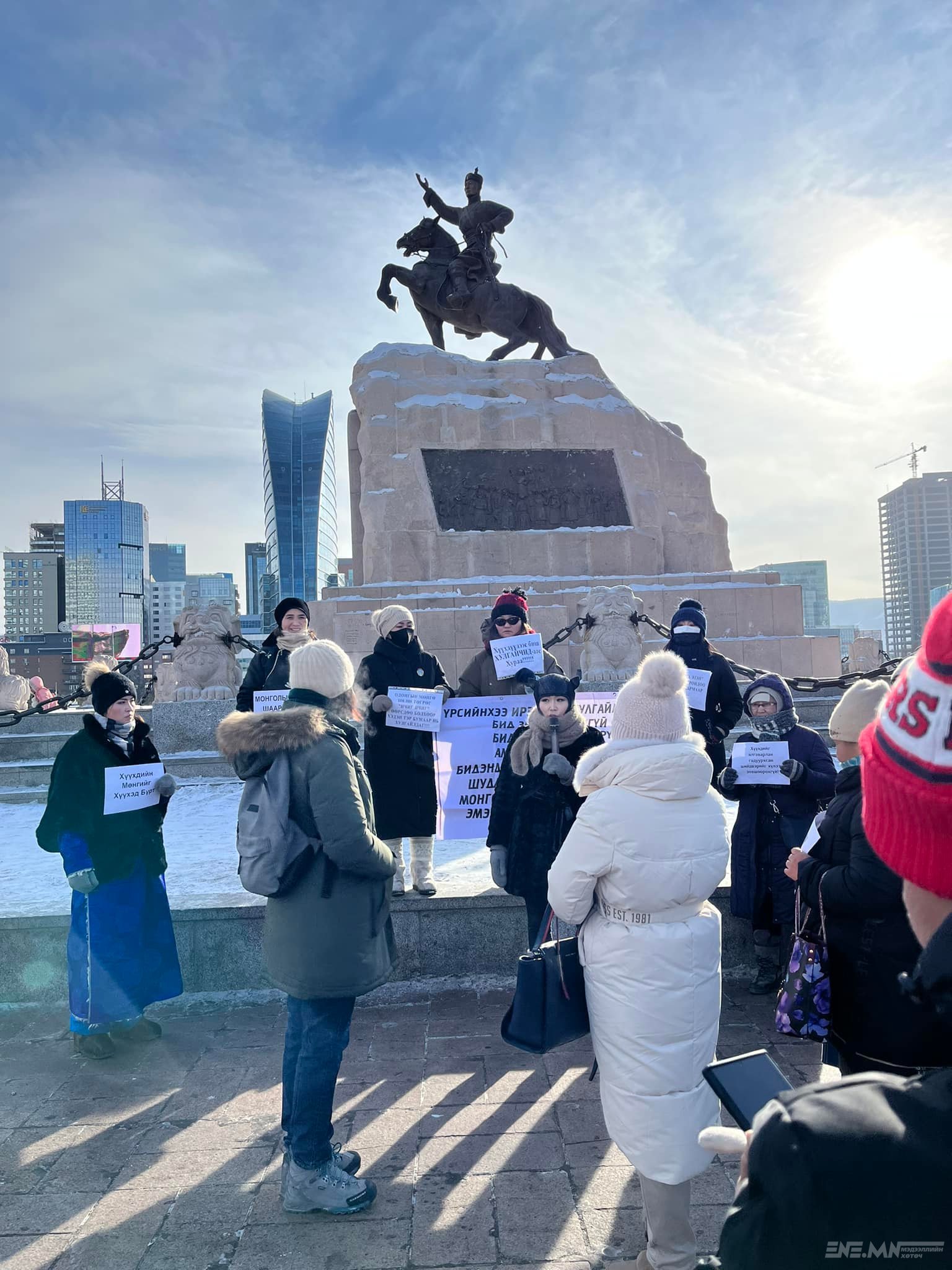 Төв талбай дээр өнөөдөр "Хүүхдийн мөнгийг Хүүхэд бүрт" уриатай жагсаалыг Иргэдийн оролцооны нэгдэл намаас зохион байгуулж байна.