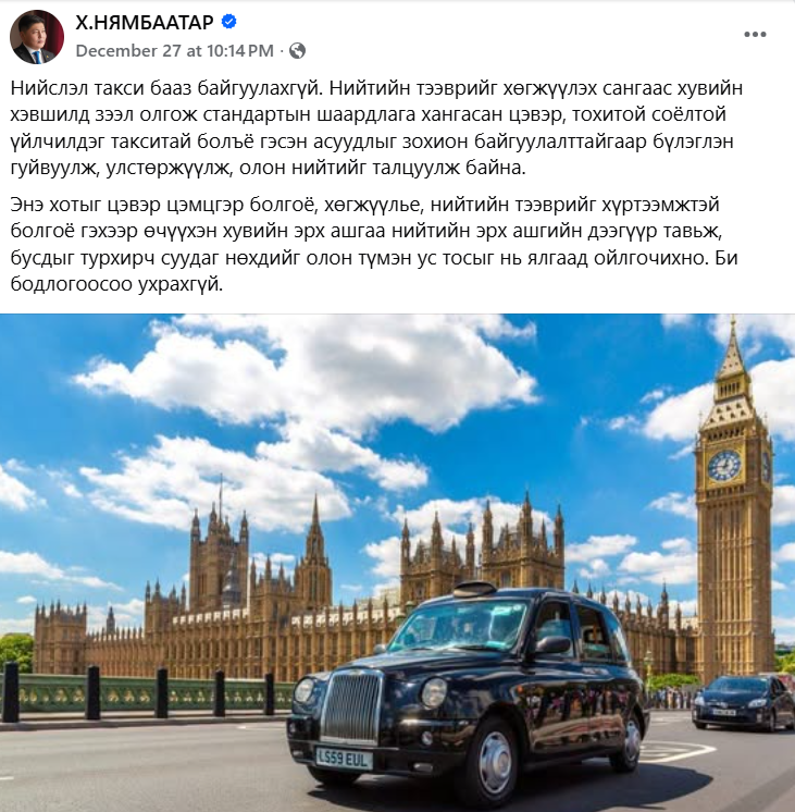 Хотын дарга Х.Нямбаатар “Нийслэл такси бааз байгуулахгүй. Нийтийн тээврийг хөгжүүлэх сангаас хувийн хэвшилд зээл олгож стандартын шаардлага хангасан цэвэр, тохитой соёлтой үйлчилдэг такситай болъё гэсэн асуудлыг ярьж байна” гэж тайлбарласаар байхад албаар мушгисаар байгаа нь энэ бүхний ард хэн нэгний өөр ашиг сонирхол байна уу гэх хардлагыг төрүүлж байна.